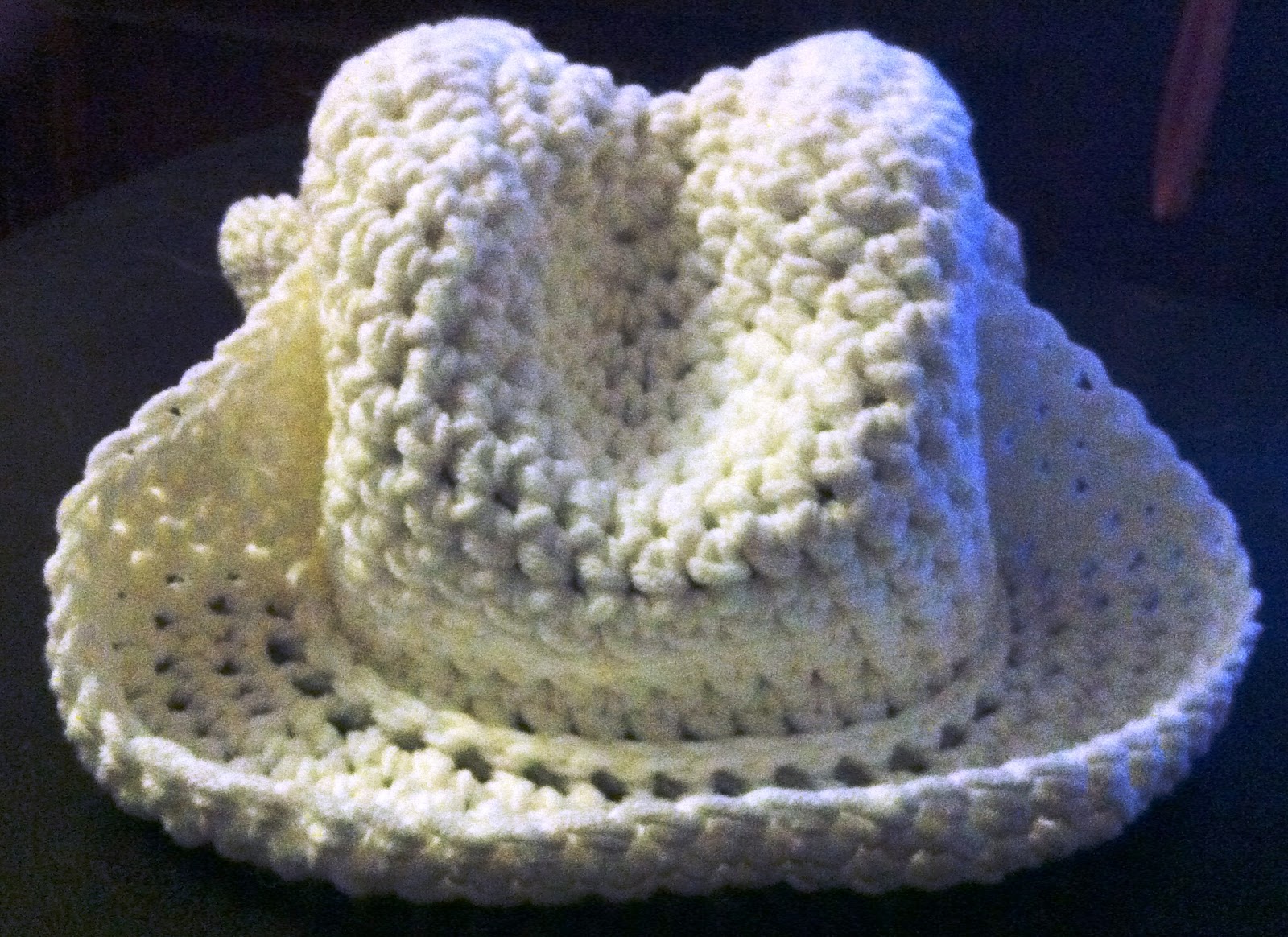 This is a pattern, Boot Scoot'n Cowboy Hat, from The Lovely Crow (this is a link to her Etsy Shop), I love her patterns! She does BEAUTIFUL work, and you may see me use them often! They are easy to read and she also does videos for any part that may be difficult to understand. She is just terrific!